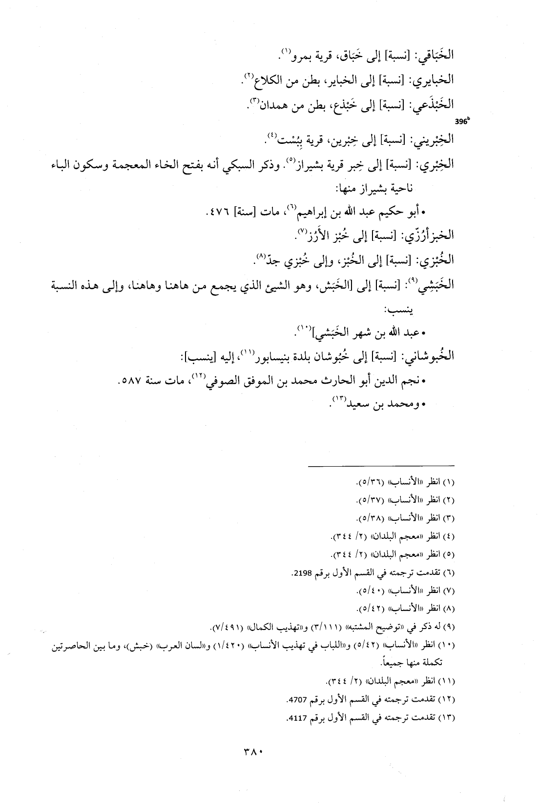 (¬10) انظر "الأنساب" (5/ 42) و"اللباب في تهذيب الأنساب" (1/ 420) و"لسان العرب", وما بين الحاصرتين تكملة منها جميعاً.