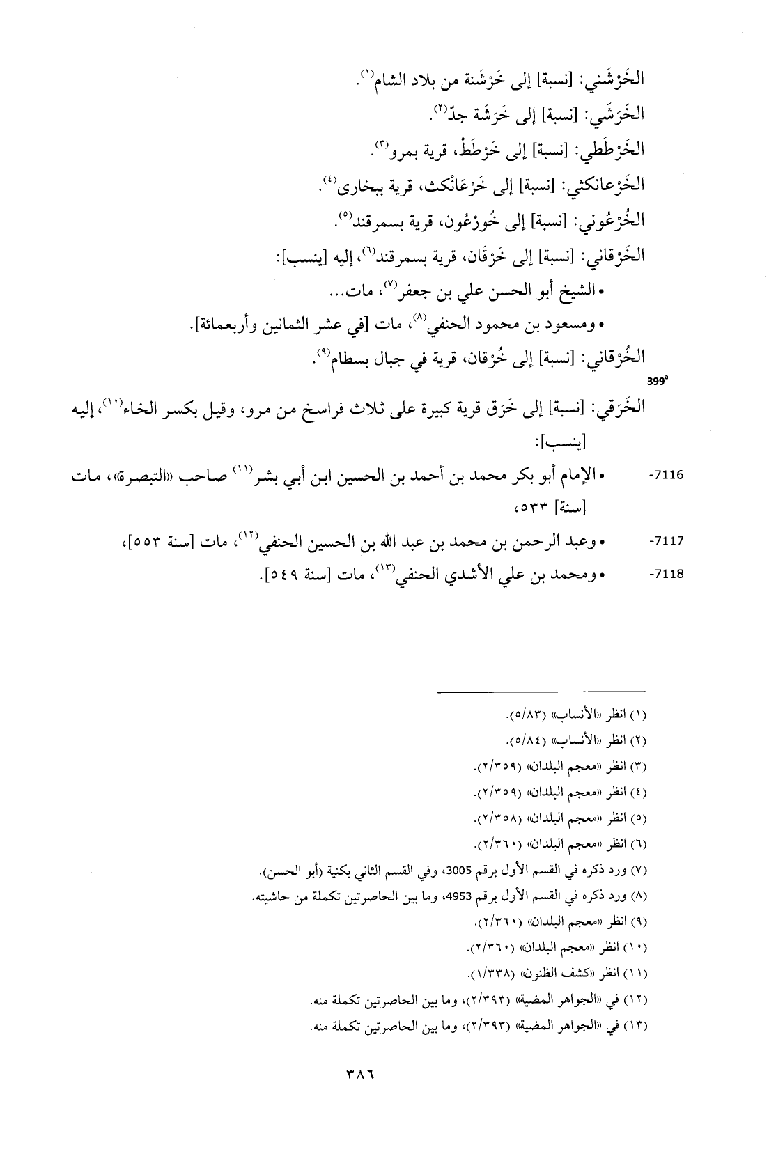 7117 - وعبد الرحمن بن محمد بن عبد الله بن الحسين الحنفي (¬12)، مات [سنة 553]،