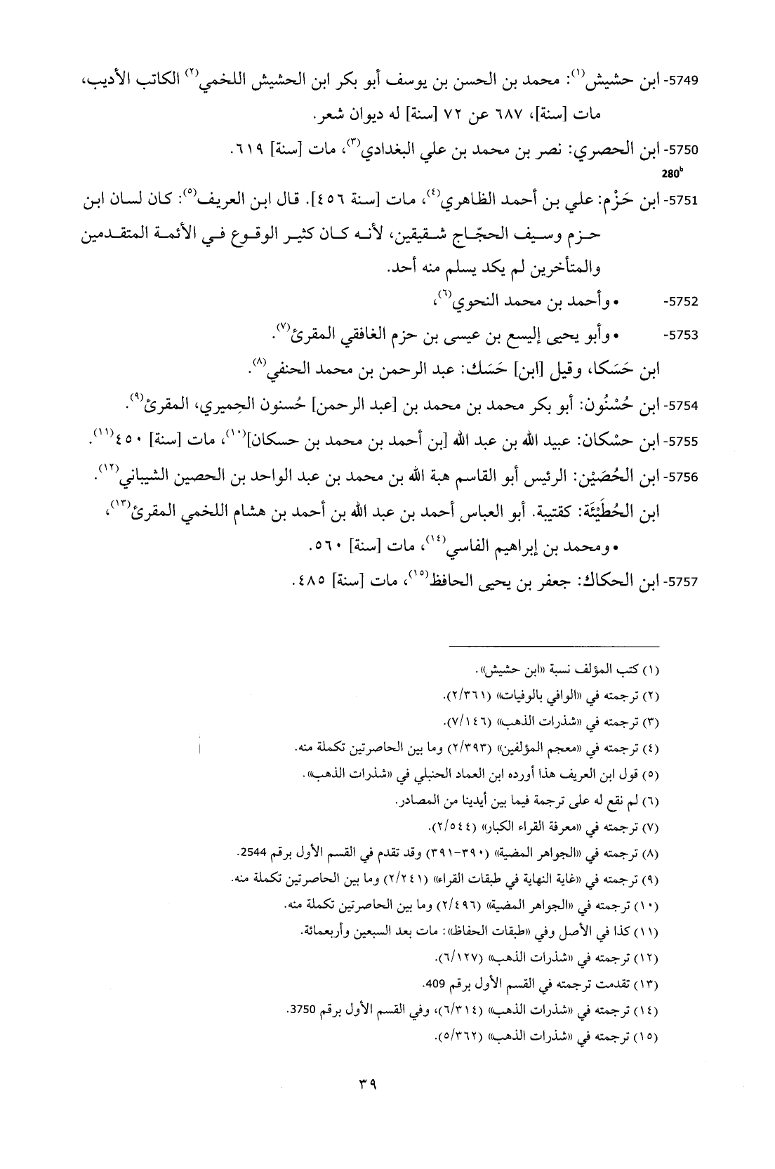 5750 - الحصري: نصر بن محمد بن علي البغدادي (¬3)، مات [سنة] 619.