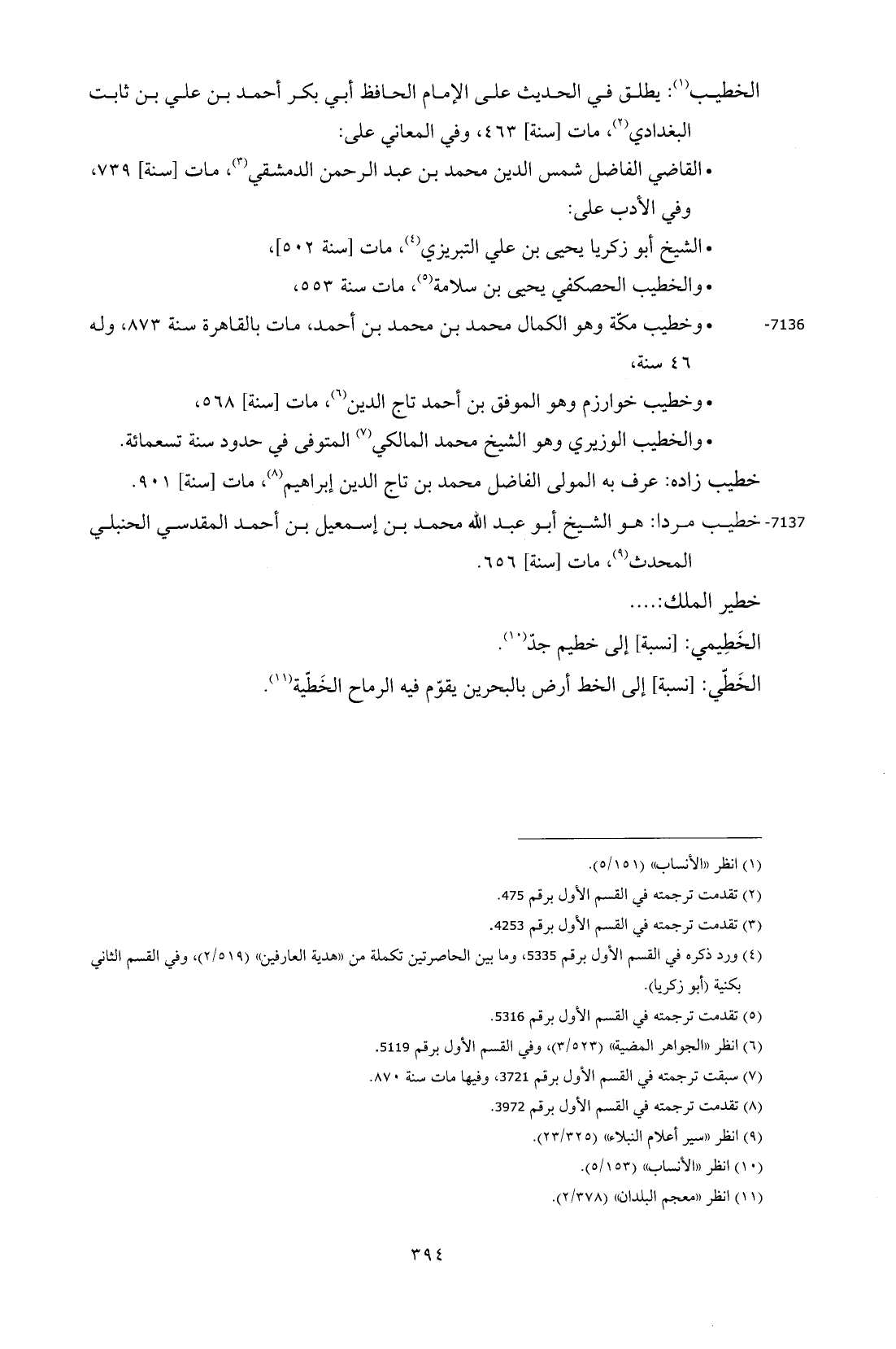 (¬4) ورد ذكره في القسم الأول برقم 5335، وما بين الحاصرتين تكملة من "هدية العارفين" (2/ 519)، وفي القسم الثاني بكنية (أبو زكريا).