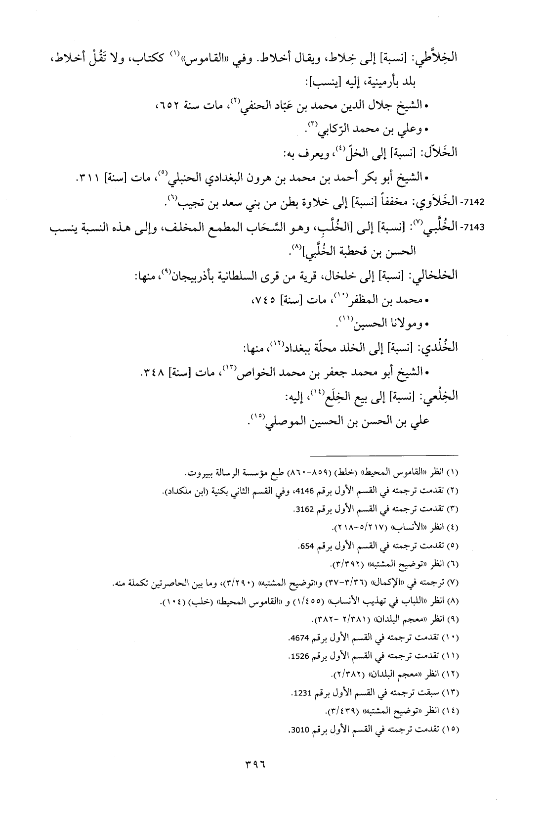 (¬8) انظر "اللباب في تهذيب الأنساب" (1/ 455) و"القاموس المحيط" (خلب (104).