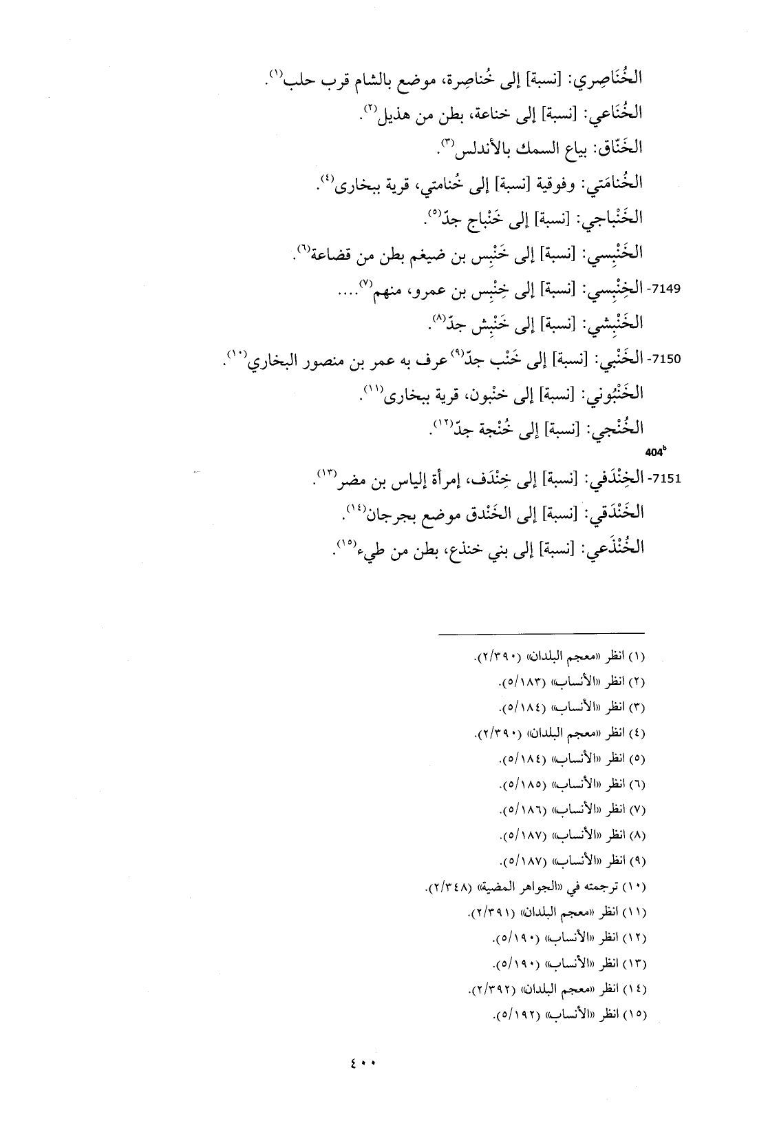 7149 - الخِنْبِسي: [نسبة] إلى خِنْبِس بن عمرو، منهم (¬7) ....