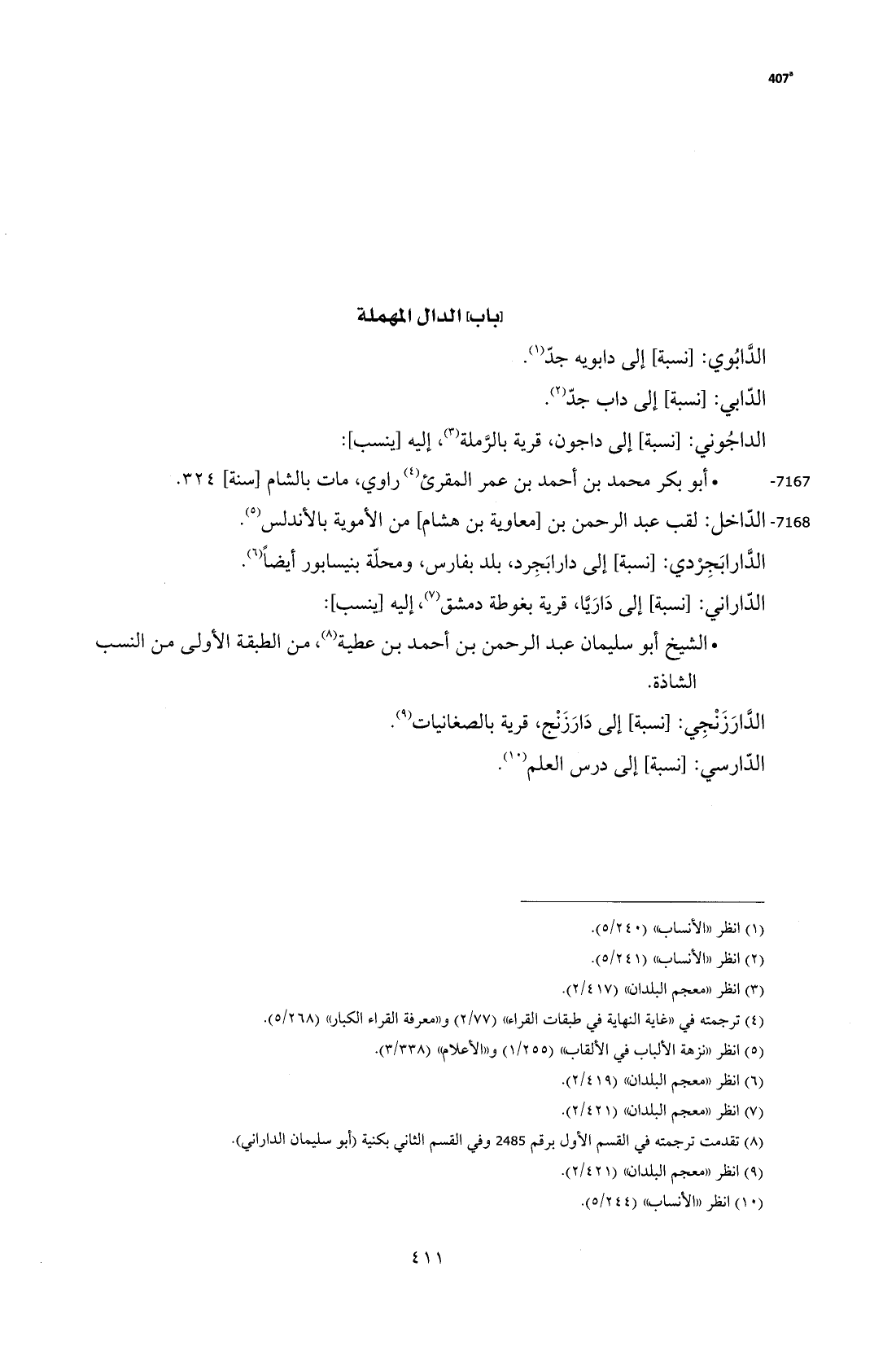 الدَّاراني: [نسبة] إلى دَارَيًا، قرية بغوطة دمشق (¬7)، إليه [ينسب]:
