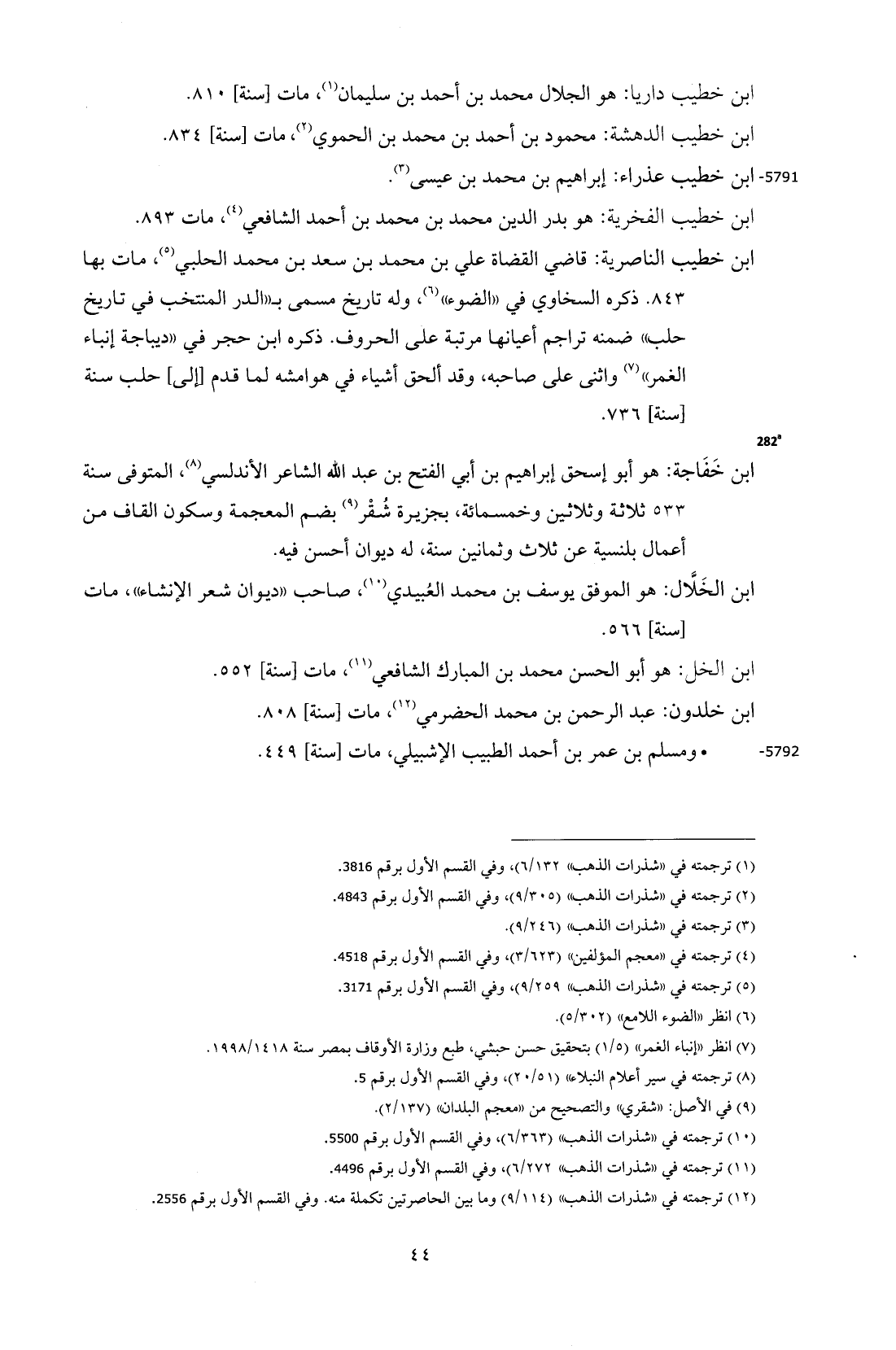 (¬7) انظر "إنباء الغمر" (1/ 5) بتحقيق حسن حبشي، طبع وزارة الأوقاف بمصر سنة 1418/ 1998 •