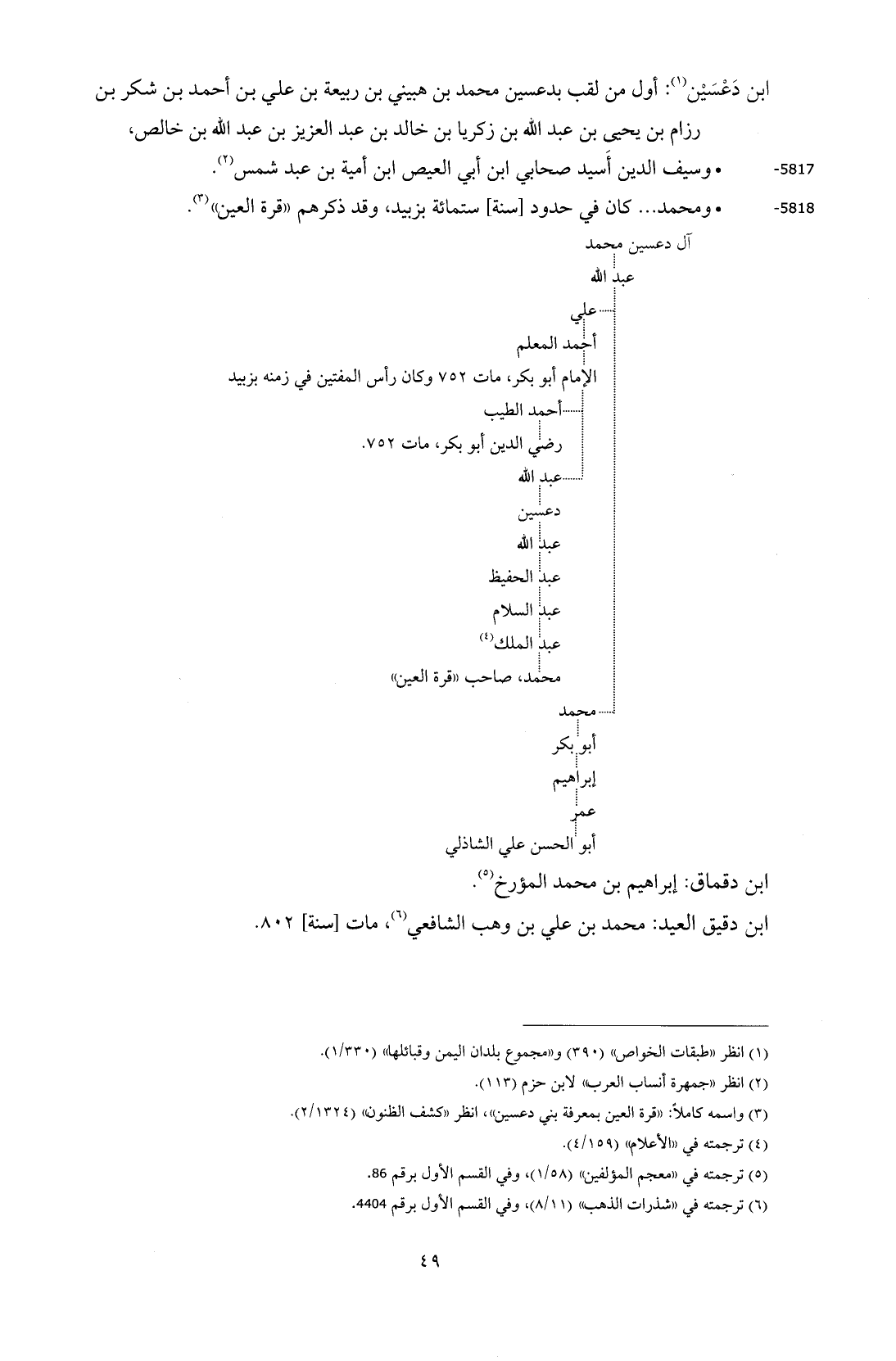 (¬3) واسمه كاملًا: "قرة العين بمعرفة بني دعسين"، انظر "كشف الظنون" (2/ 1324).