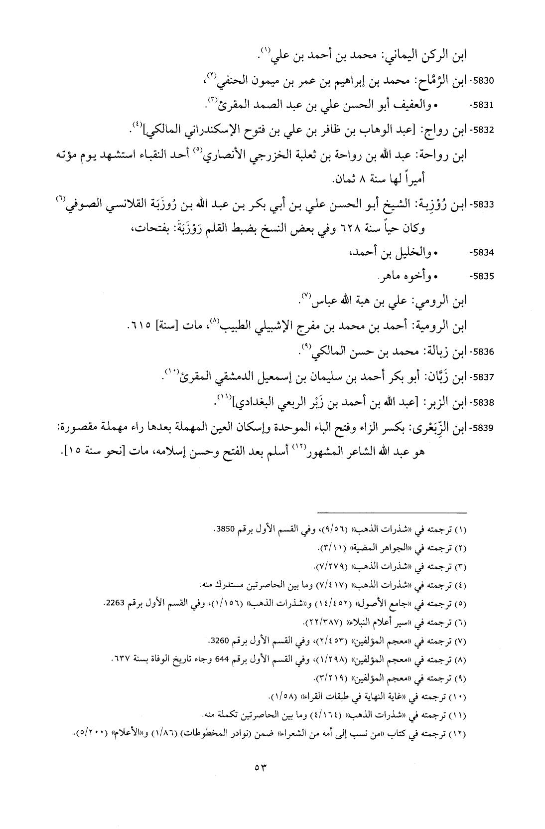 5839 - ابن الزِّبَعْرى: بكسر الزاء وفتح الباء الموحدة وإسكان العين المهملة بعدها راء مهملة مقصورة: