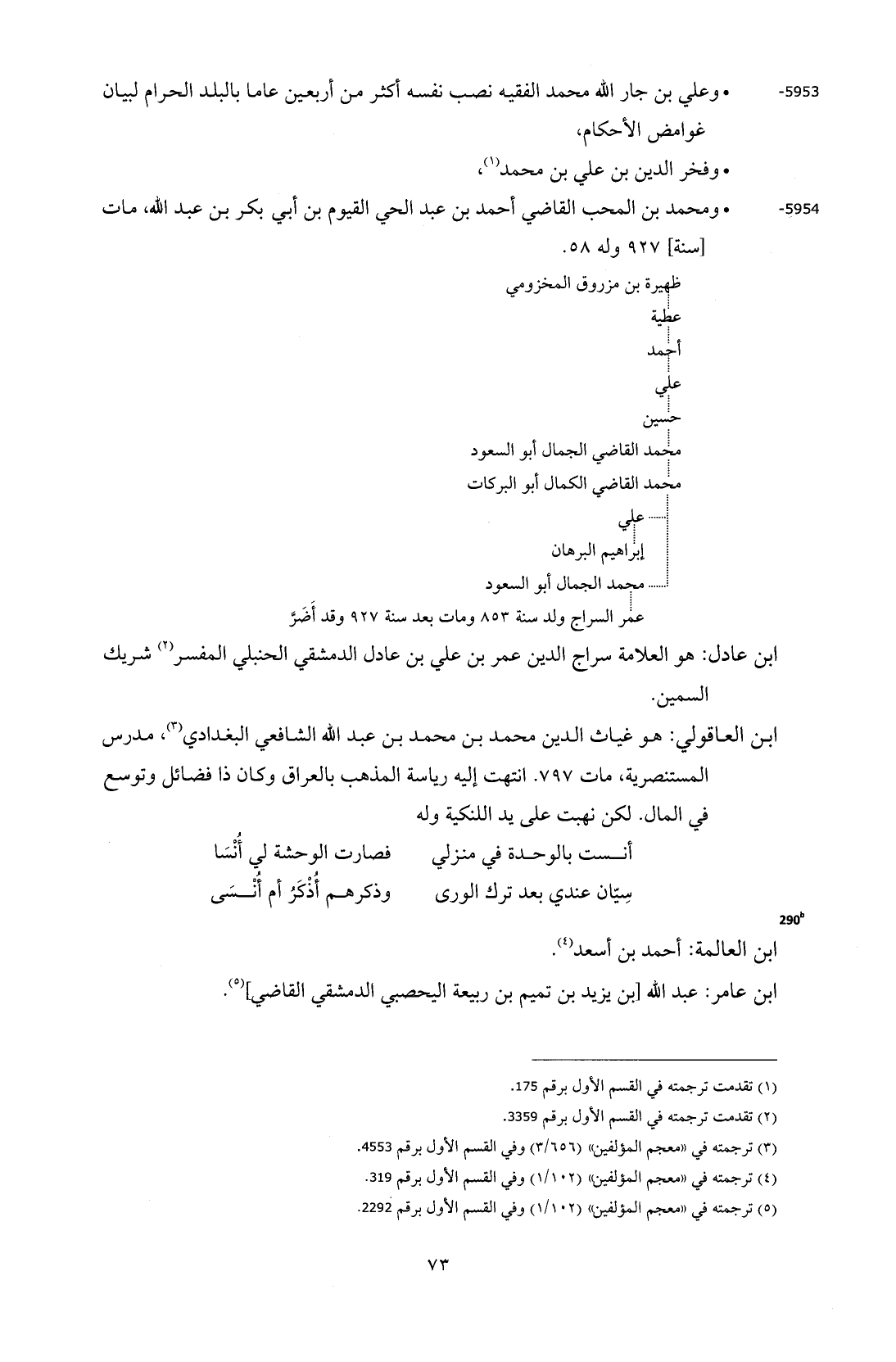 5953 - • وعلي بن جار الله محمد الفقيه نصب نفسه أكثر من أربعين عاما بالبلد الحرام لبيان غوامض الأحكام،