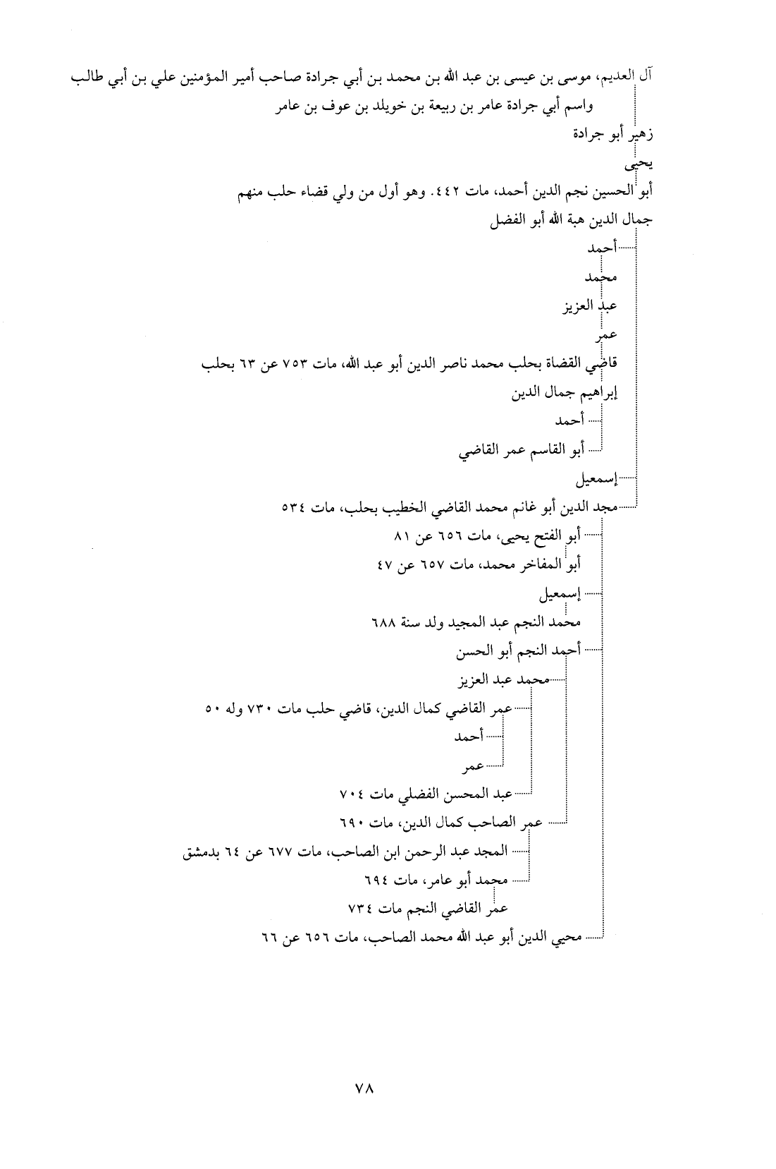 آل العديم، موسى بن عيسى بن عبد الله بن محمد بن أبي جرادة صاحب أمير المؤمنين علي بن أبي طالب واسم أبي جرادة عامر بن ربيعة بن خويلد بن عوف بن عامر