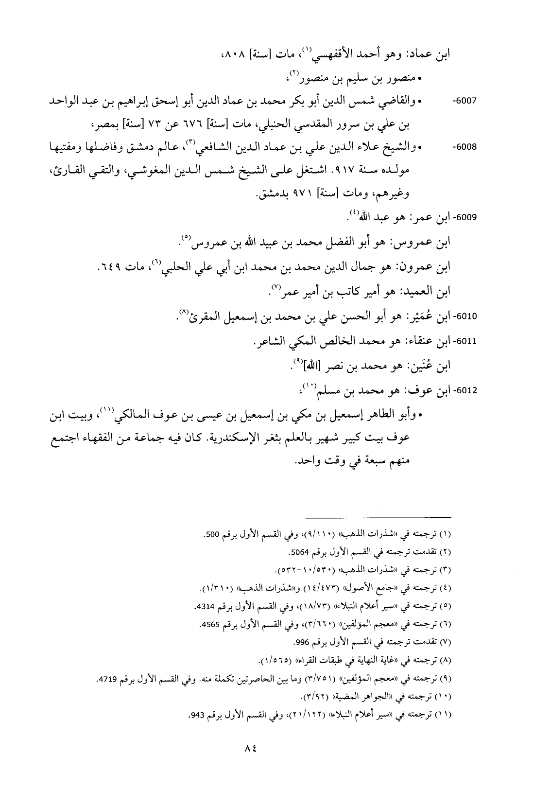 6007 - • والقاضي شمس الدين أبو بكر محمد بن عماد الدين أبو إسحق إبراهيم بن عبد الواحد بن علي بن سرور المقدسي الحنبلي، مات [سنة] 676 عن 73 [سنة] بمصر،