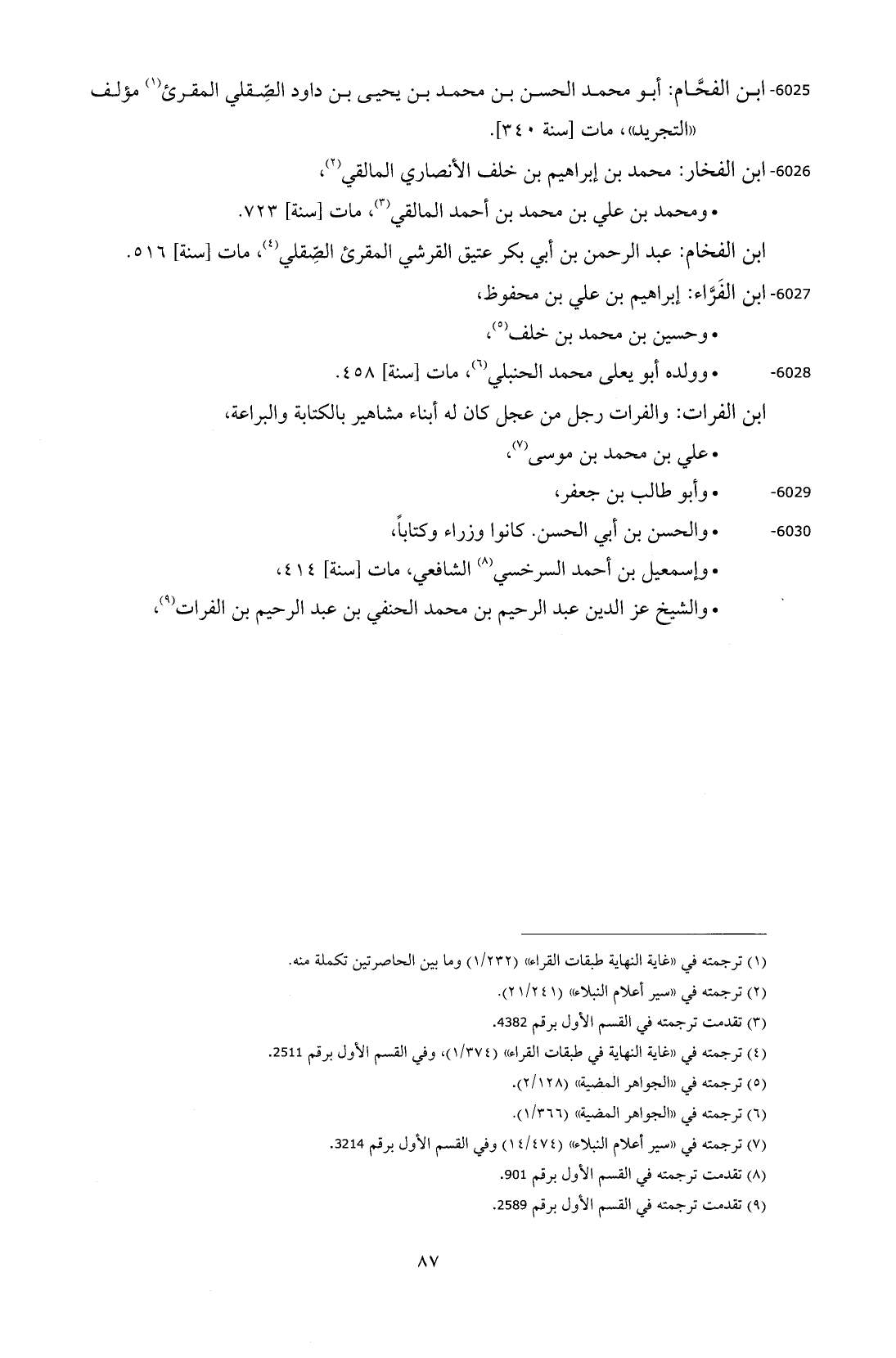 6025 - الفحَّام: أبو محمد الحسن بن محمد بن يحيى بن داود الصِّقلي المقرئ (¬1) مؤلف "التجريد"، مات [سنة 340].
