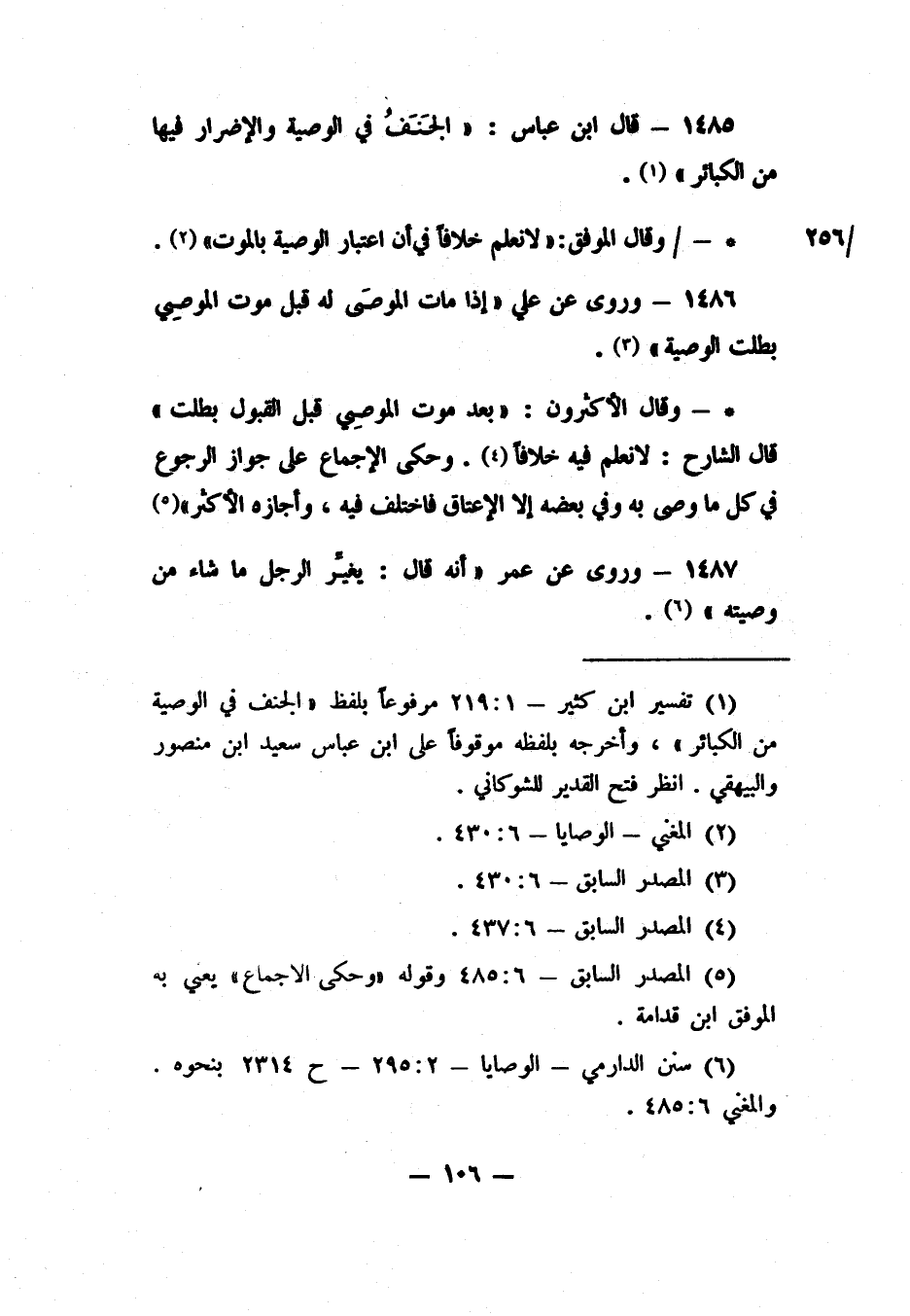 1485- "قال ابن عباس: الحيف في الوصية والإضرار فيها من الكبائر" 1.
