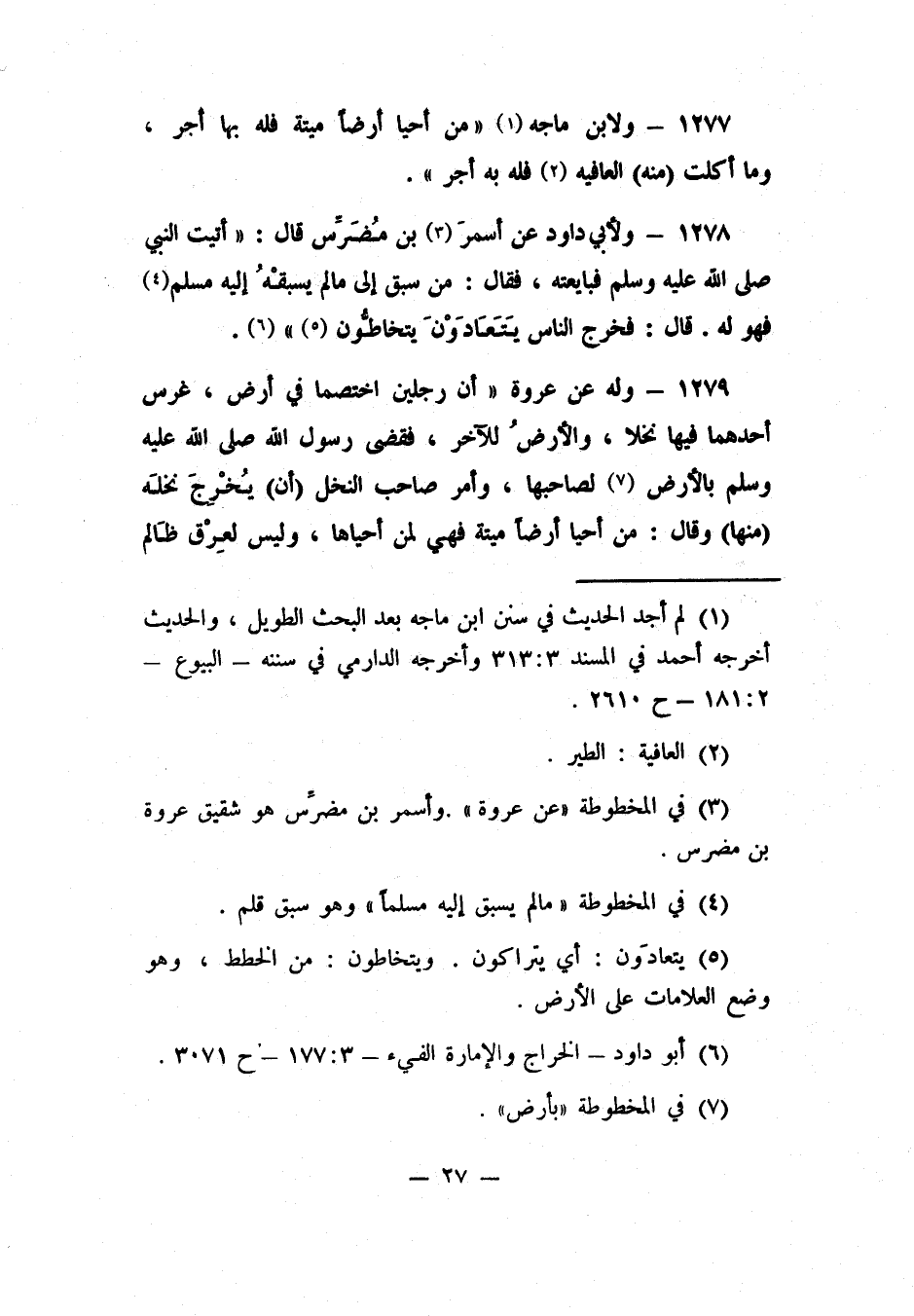 1278- ولأبي داود عن أسمرَ 3 بن مُضَرِّس قال: أتيت النبي صلى الله عليه وسلم فبايعته، فقال: "من سبق إلى ما لم يسبقْهُ إليه مسلم، 4 فهو له. قال: فخرج الناس يَتَعَادَوْنَ يتخاطُّون 5" 6.