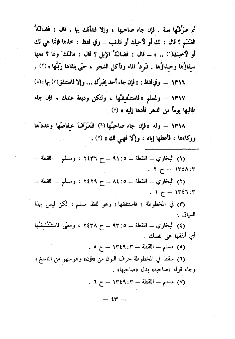 1317- ولمسلم: "فاستنْفِقْها، ولتكن وديعة عندك. فإن جاء طالبها يوماً من الدهر فأدها إليه" 5.