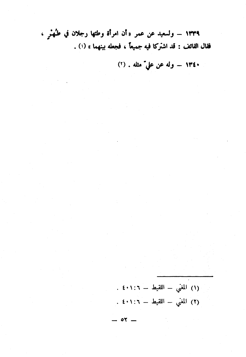 1339- ولسعيد عن عمر: "أن امرأة وطئها رجلان في طُهْرٍ، فقال القائف: قد اشتركا فيه جميعاً، فجعله بينهما" 1.