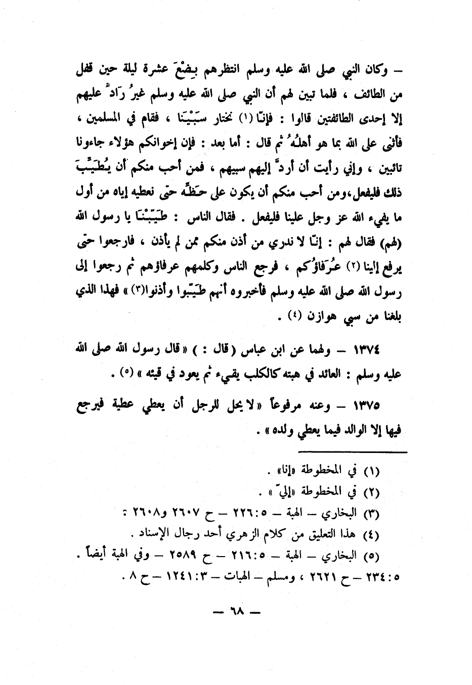 5 البخاري: الهبة (5/216) ح (2589) ، وفي الهبة أيضاً (5/234) ح (2621) , ومسلم: الهبات (3/1241) ح (8) .