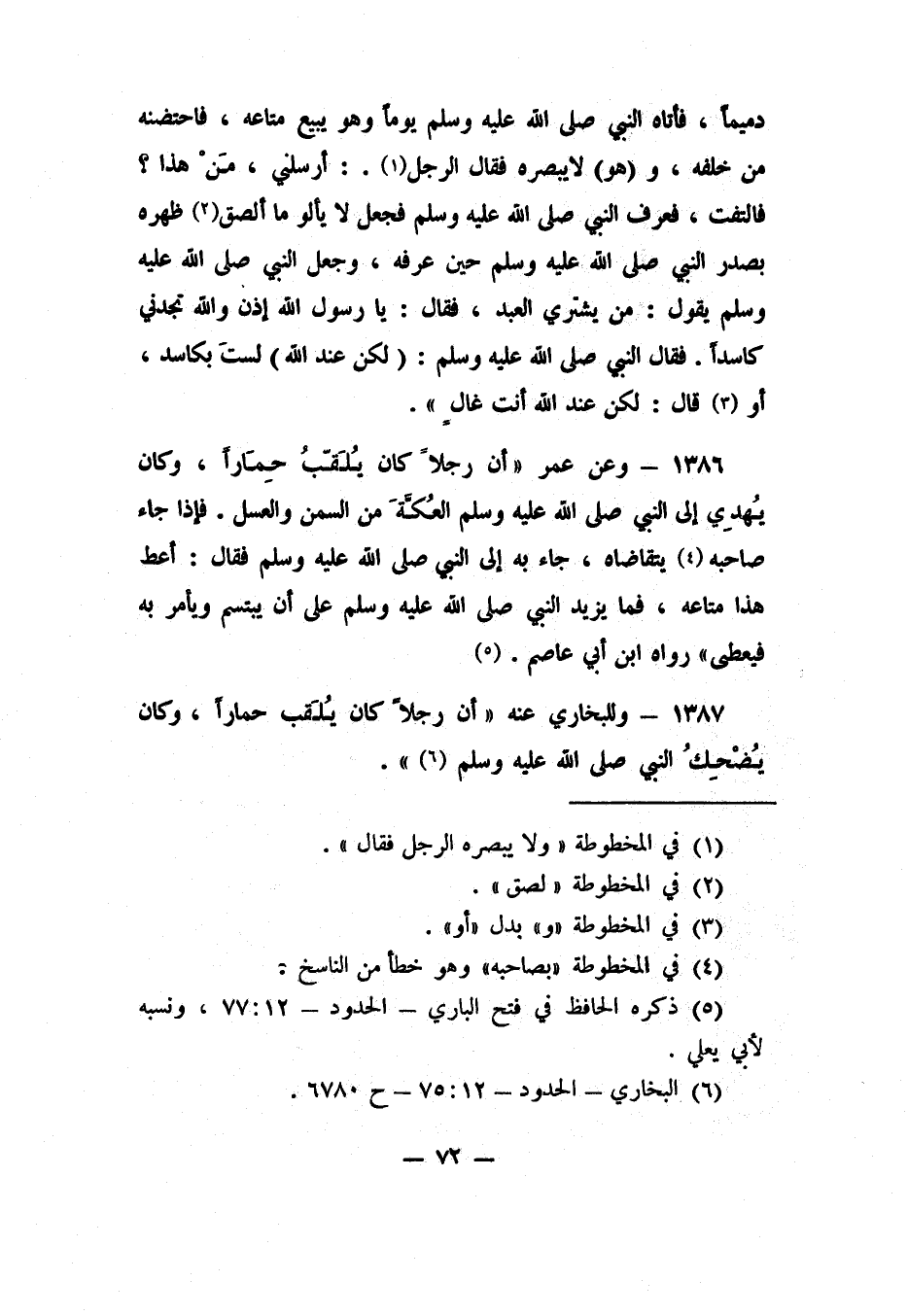 1387- وللبخاري عنه: "أن رجلاً كان يُلَقب حماراً، وكان يُضحك النبي صلى الله عليه وسلم" 6.