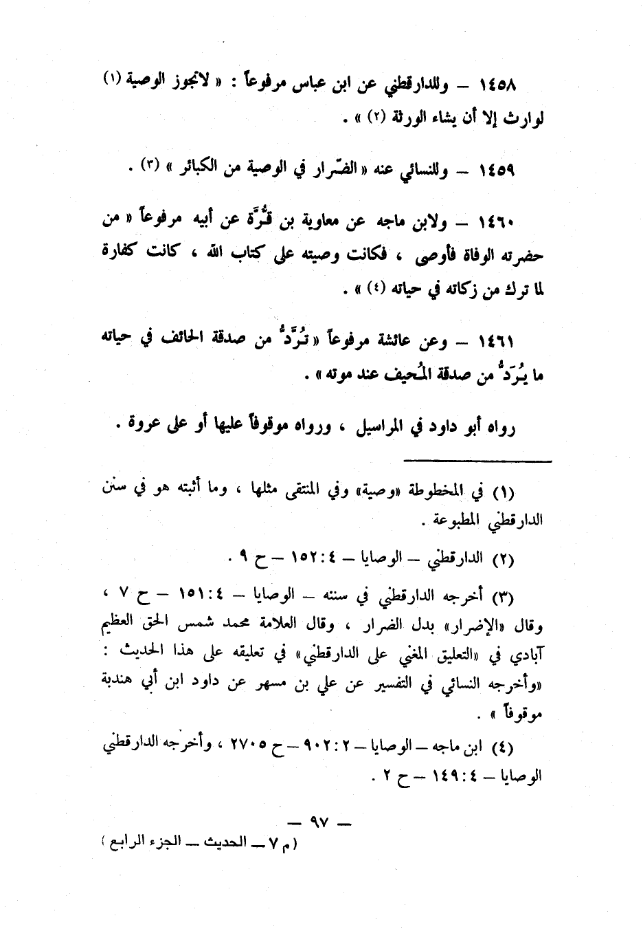 4 ابن ماجة: الوصايا (2/902) ح (2705) , وأخرجه الدارقطني: الوصايا (4/149) ح (2) .