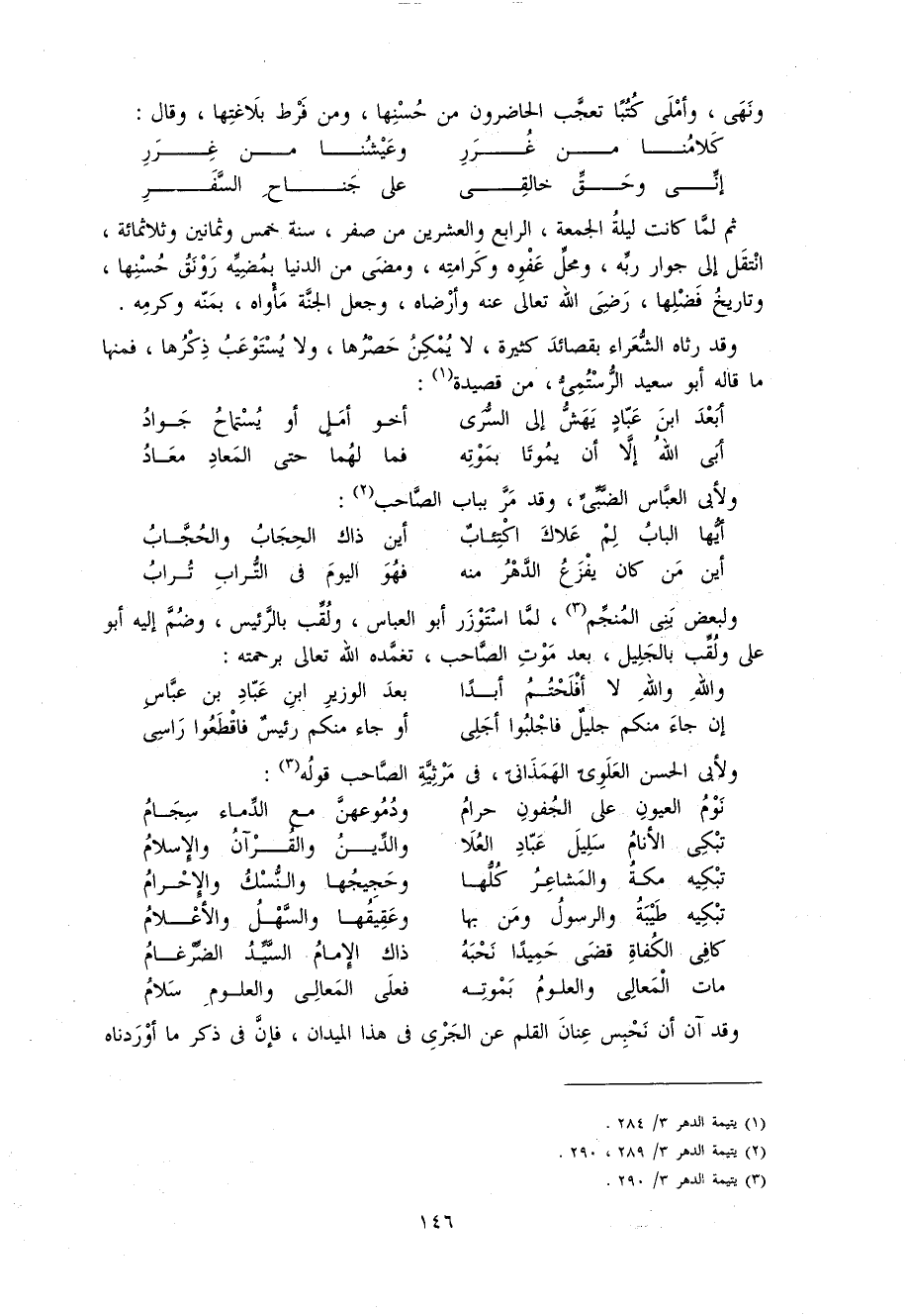 و لأبى الحسن العلوىّ الهمذانىّ، فى مرثيّة الصّاحب قوله 3: