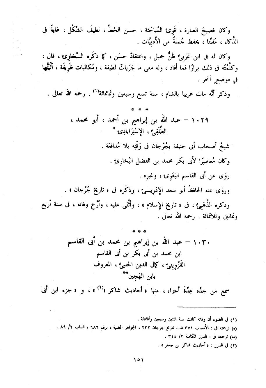 151 و كان فصيح العبارة، قوىّ المباحثة، حسن الخطّ، لطيف الشّكل، غاية فى الذّكاء، مفنّنا، يحفظ جملة من الأدبيّات.