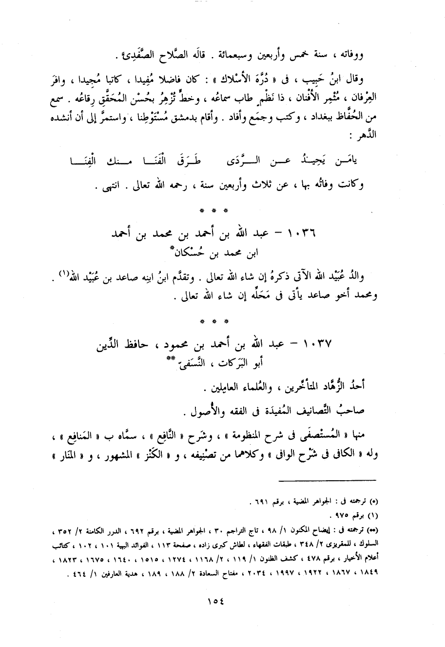 1037 - عبد اللّه بن أحمد بن محمود، حافظ الدّين أبو البركات، النّسفىّ **