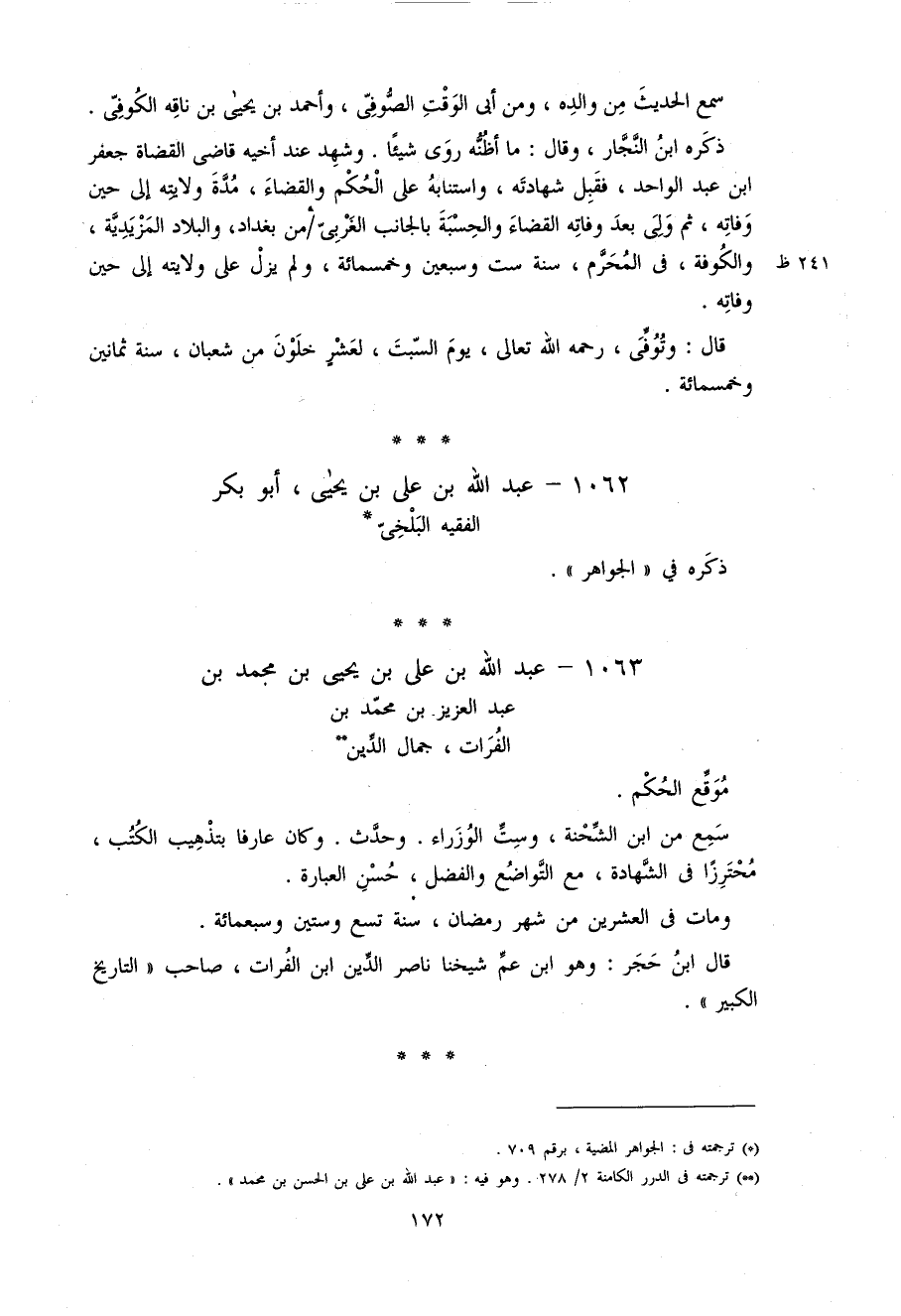 1063 - عبد اللّه بن على بن يحيى بن محمد بن عبد العزيز بن محمّد بن الفرات، جمال الدّين **