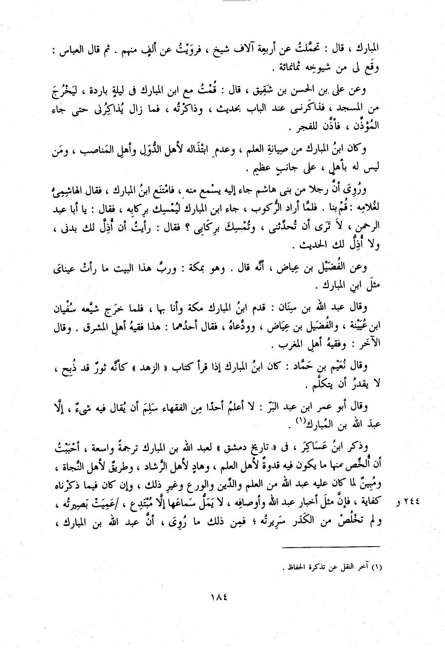 184 المبارك، قال: تحمّلت عن أربعة آلاف شيخ، فرويت عن ألف منهم. ثم قال العباس: