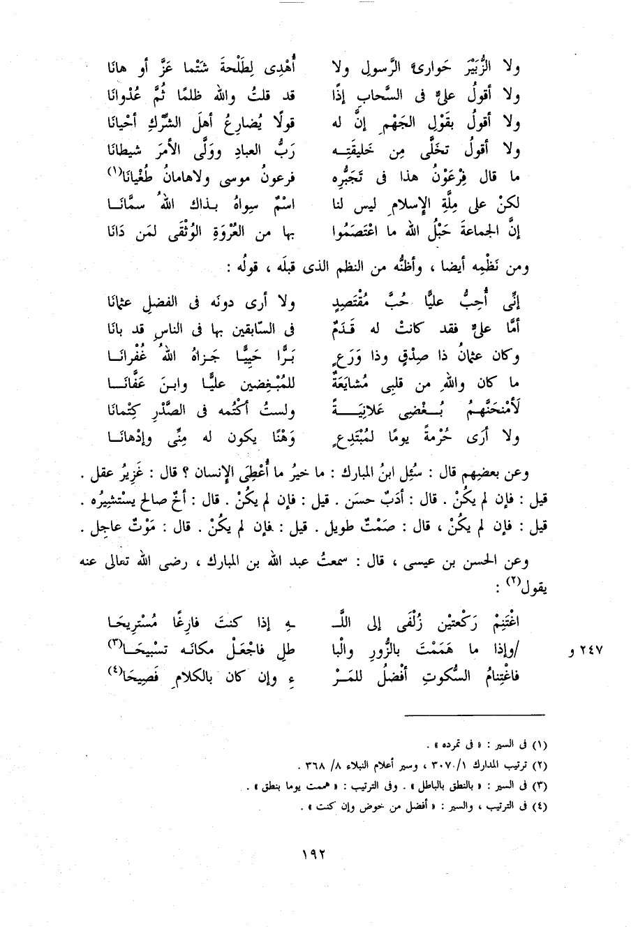 و عن الحسن بن عيسى، قال: سمعت عبد اللّه بن المبارك، رضى اللّه تعالى عنه يقول 2:
