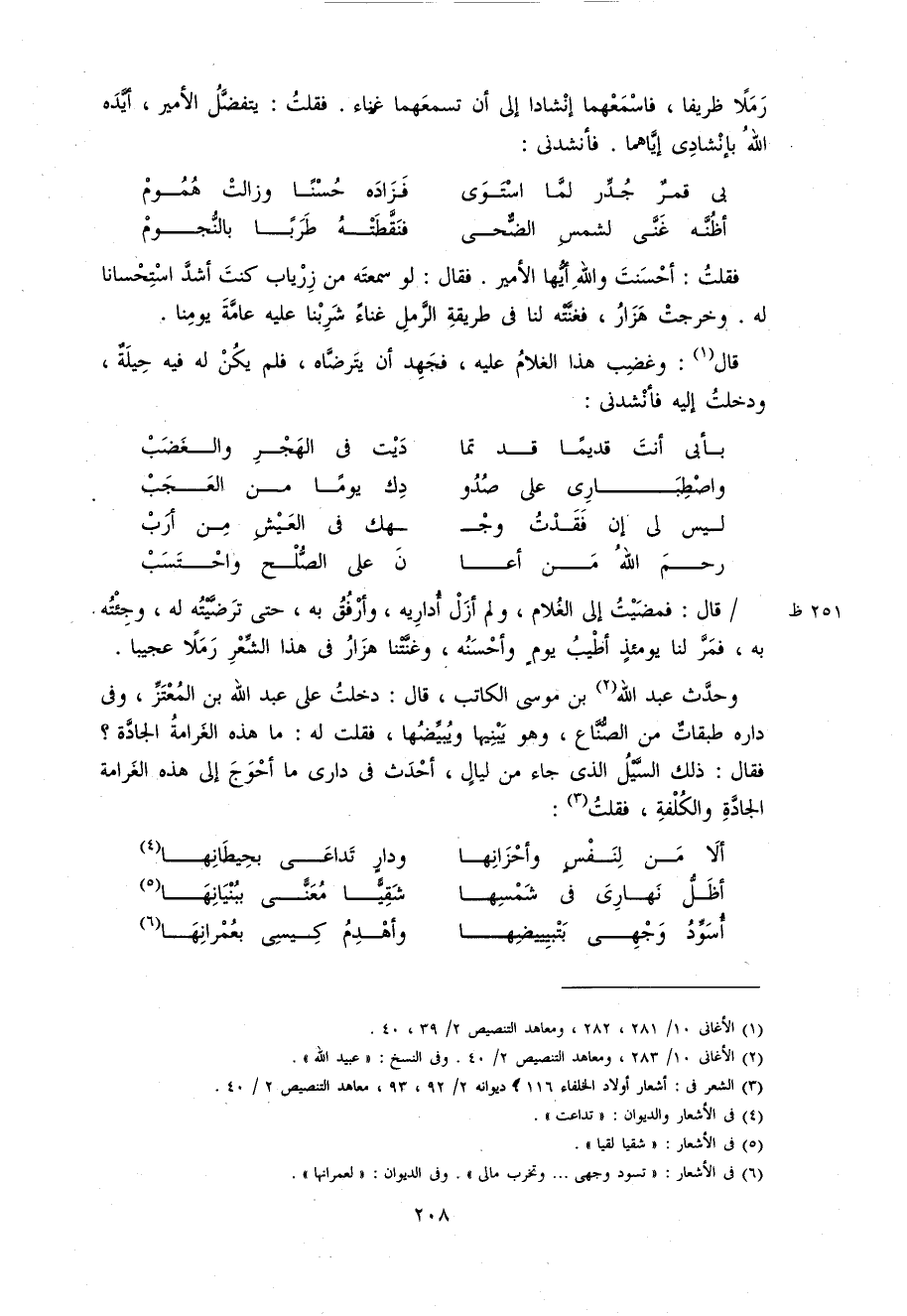 208 رملا ظريفا، فاسمعهما إنشادا إلى أن تسمعهما غناء. فقلت: يتفضّل الأمير، أيّده اللّه بإنشادى إيّاهما. فأنشدنى: