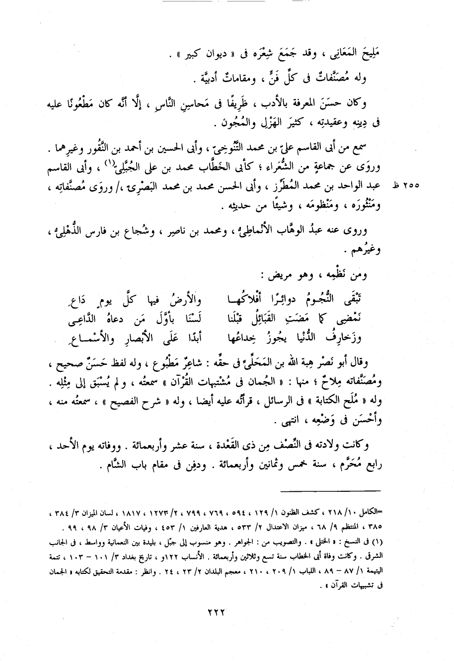 222 مليح المعانى، و قد جمع شعره فى «ديوان كبير».