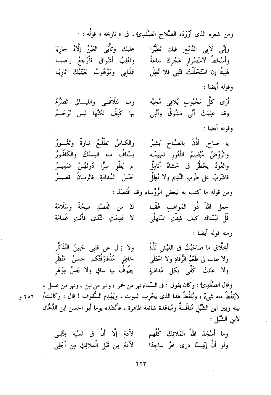 223 و من شعره الذى أورده الصّلاح الصّفدىّ، فى «تاريخه» قوله: