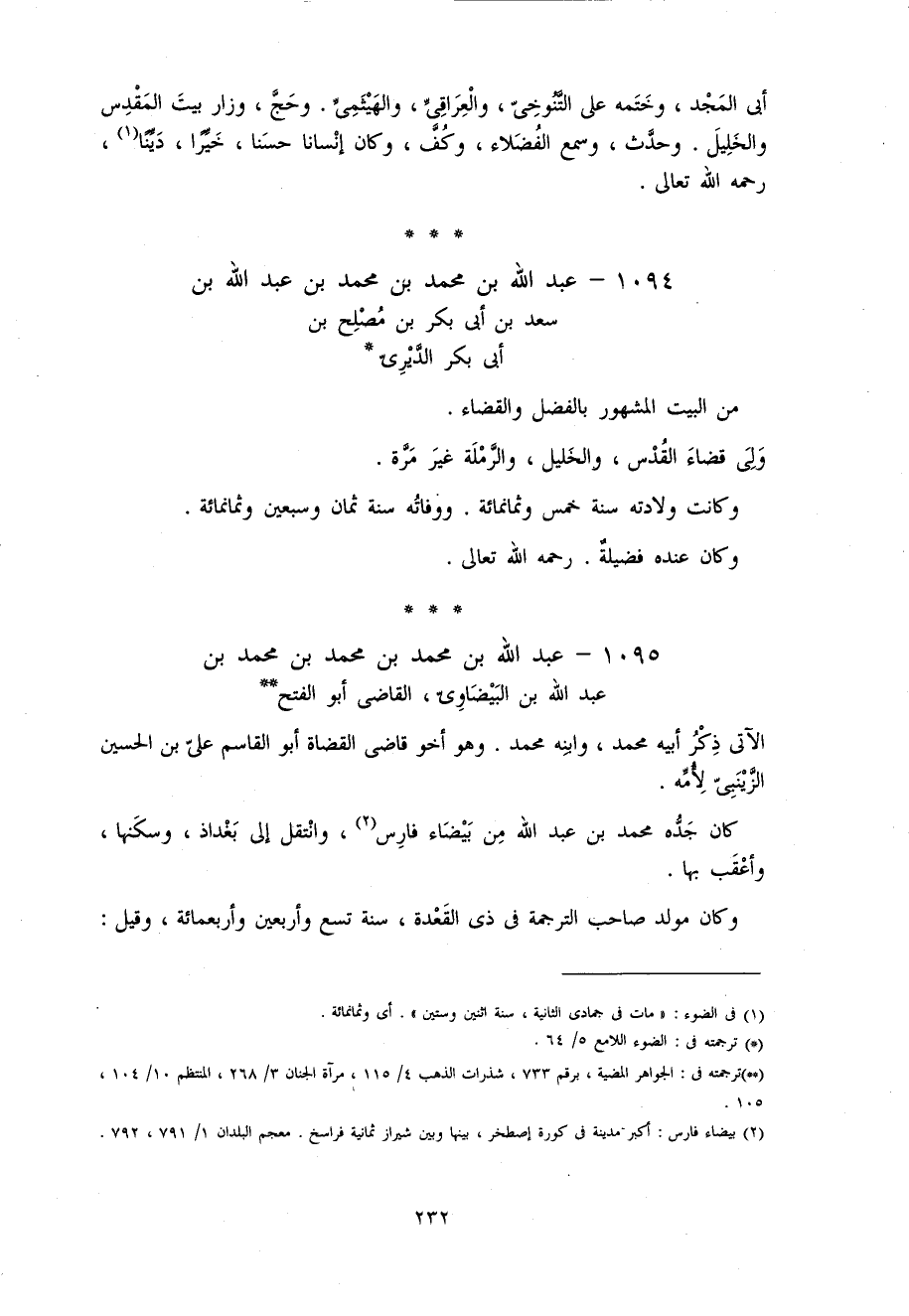 1095 - عبد اللّه بن محمد بن محمد بن محمد بن عبد اللّه بن البيضاوىّ، القاضى أبو الفتح **