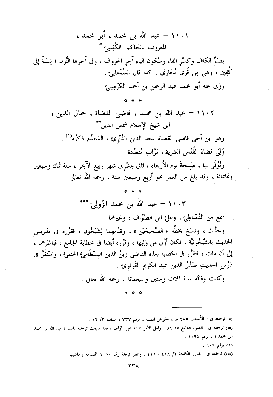 1101 - عبد اللّه بن محمد، أبو محمد، المعروف بالحاكم الكفينىّ *