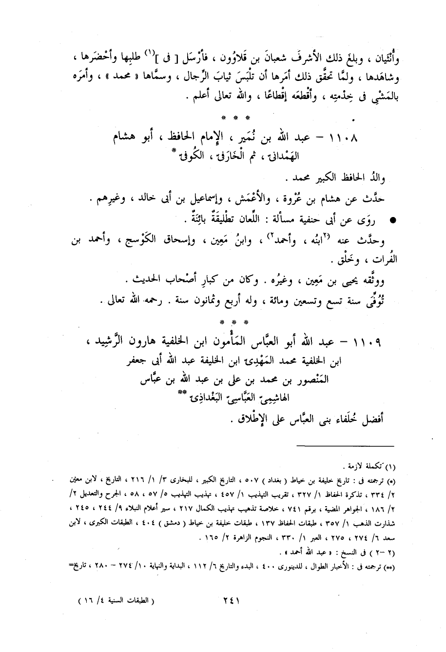 1108 - عبد اللّه بن نمير، الإمام الحافظ، أبو هشام الهمدانىّ، ثم الخارفىّ، الكوفىّ *