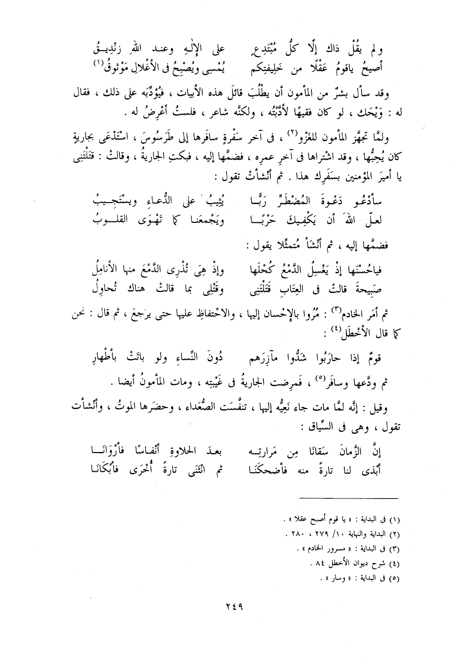 ثم ودّعها و سافر 5، فمرضت الجارية فى غيبته، و مات المأمون أيضا.