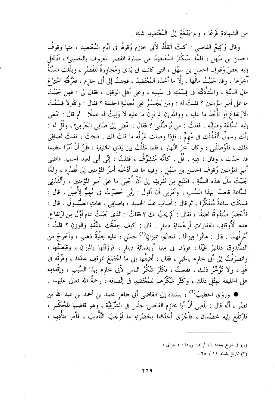 269 من الشهادة فزعا، و لم يدفع إلى المعتضد شيئا.