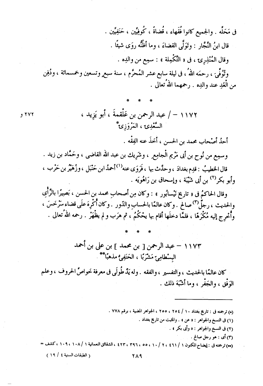 289 فى محلّه. و الجميع كانوا فقهاء، قضاة، كوفيّين، حنفيّين.