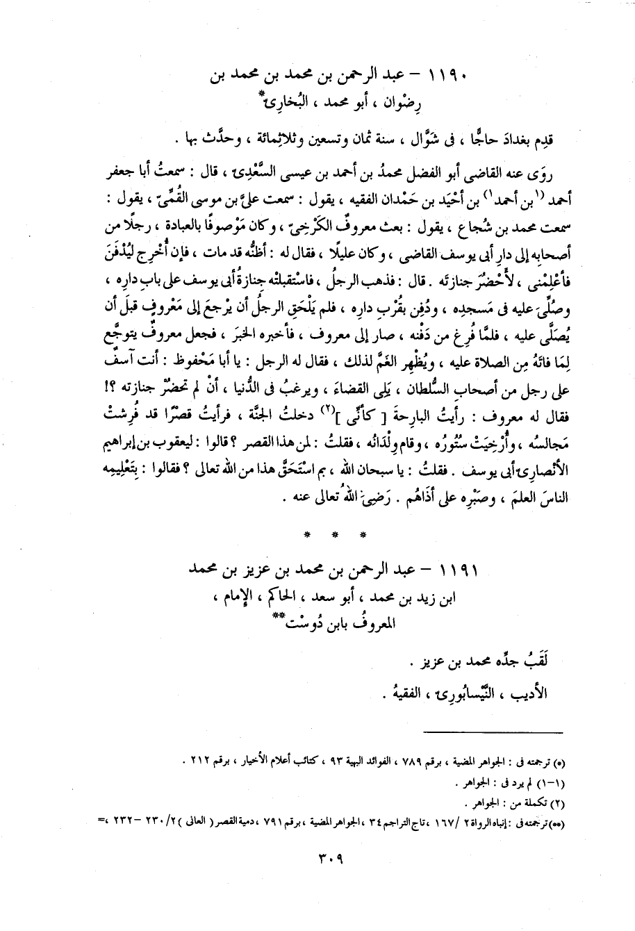 1191 - عبد الرحمن بن محمد بن عزيز بن محمد ابن زيد بن محمد، أبو سعد، الحاكم، الإمام، المعروف بابن دوست **
