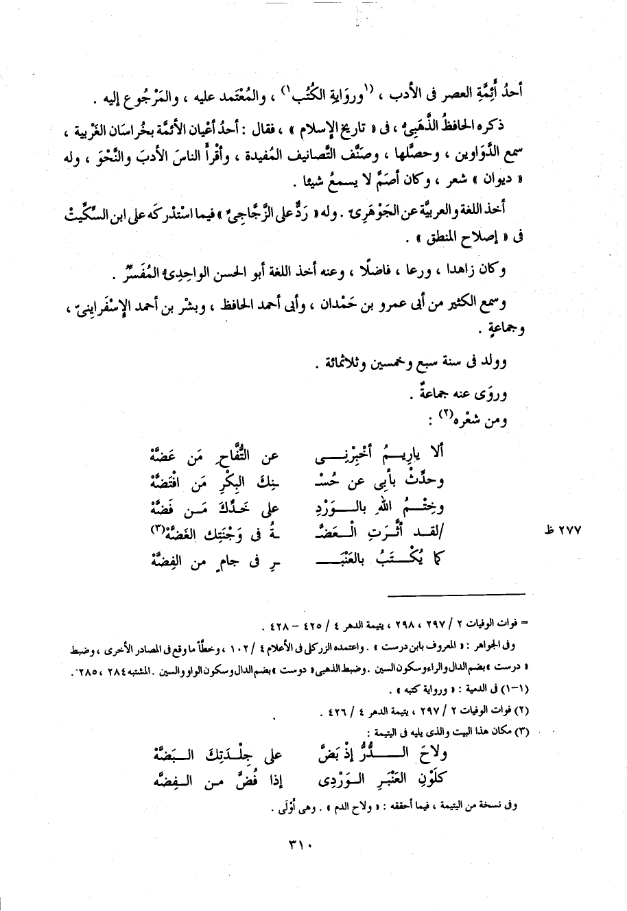310 أحد أئمّة العصر فى الأدب، 1 و رواية الكتب 1، و المعتمد عليه، و المرجوع إليه.