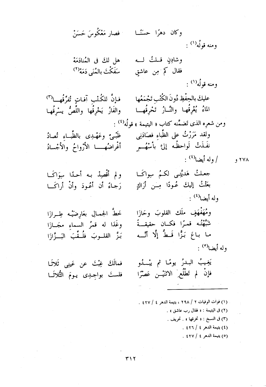 و من شعره الذى تضمّنه كتاب «اليتيمة» قوله 4: