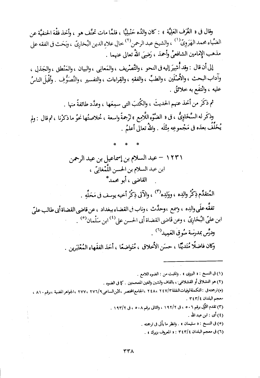 1231 - عبد السلام بن إسماعيل بن عبد الرحمن ابن عبد السلام بن الحسن اللّمغانىّ، القاضى، أبو محمد *