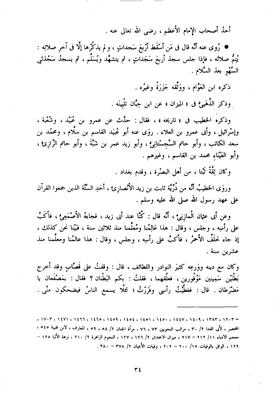 34 أحد أصحاب الإمام الأعظم، رضى اللّه تعالى عنه.