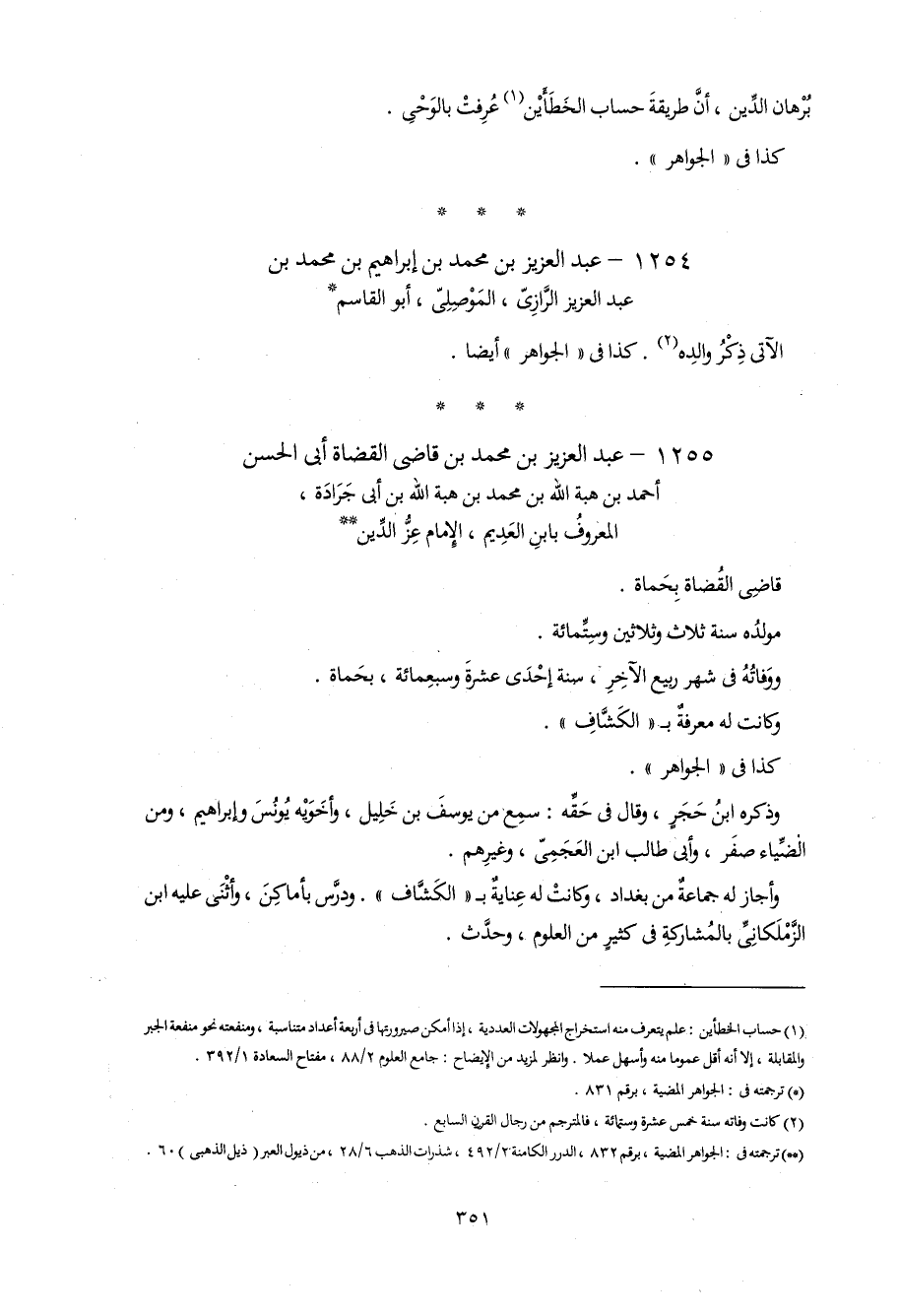 1255 - عبد العزيز بن محمد بن قاضى القضاة أبى الحسن أحمد بن هبة اللّه بن محمد بن هبة اللّه بن أبى جرادة، المعروف بابن العديم، الإمام عزّ الدّين **