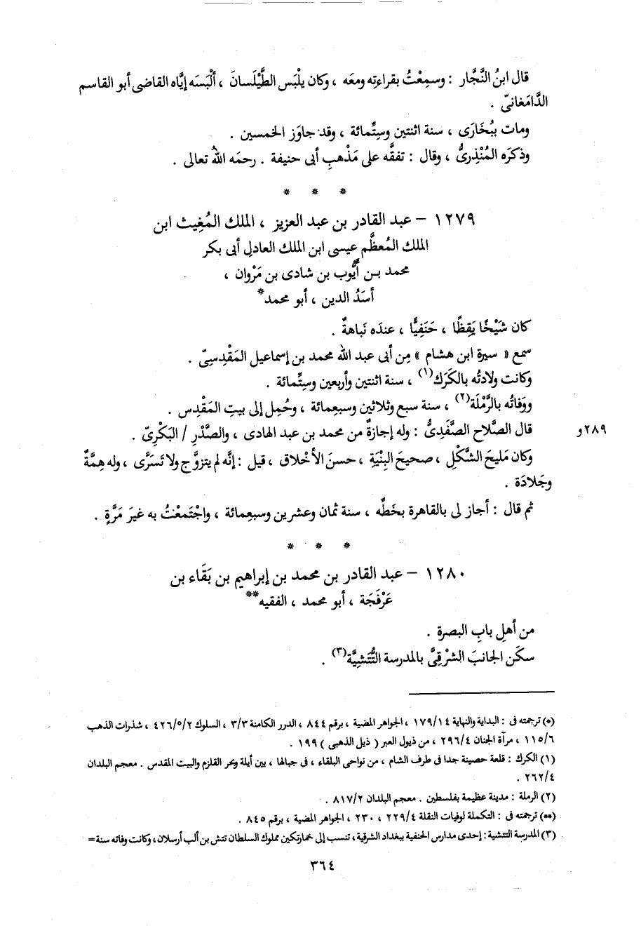 1279 - عبد القادر بن عبد العزيز، الملك المغيث ابن الملك المعظّم عيسى ابن الملك العادل أبى بكر محمد بن أيّوب بن شادى بن مروان، أسد الدين، أبو محمد *