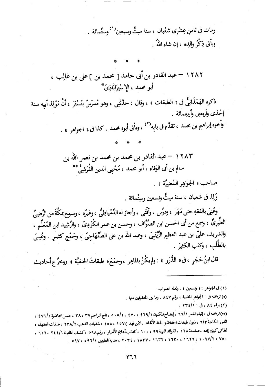 1283 - عبد القادر بن محمد بن محمد بن نصر اللّه بن سالم بن أبى الوفاء، أبو محمد، محيى الدين القرشىّ **