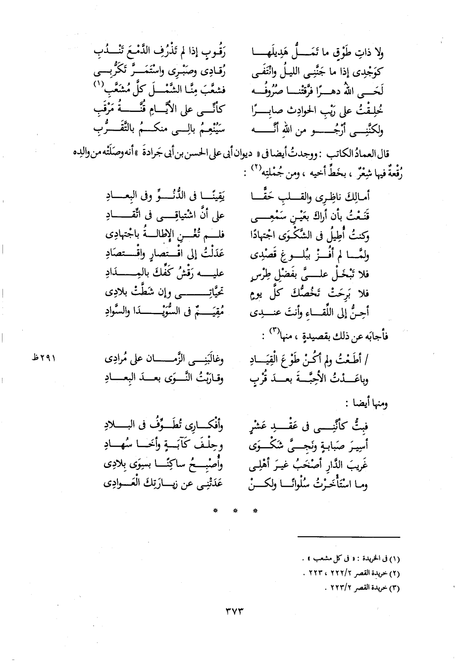 قال العماد الكاتب: و وجدت أيضا فى «ديوان أبى على الحسن بن أبى جرادة» أنه وصلته من والده رقعة فيها شعر، بخطّ أخيه، و من جملته 2: