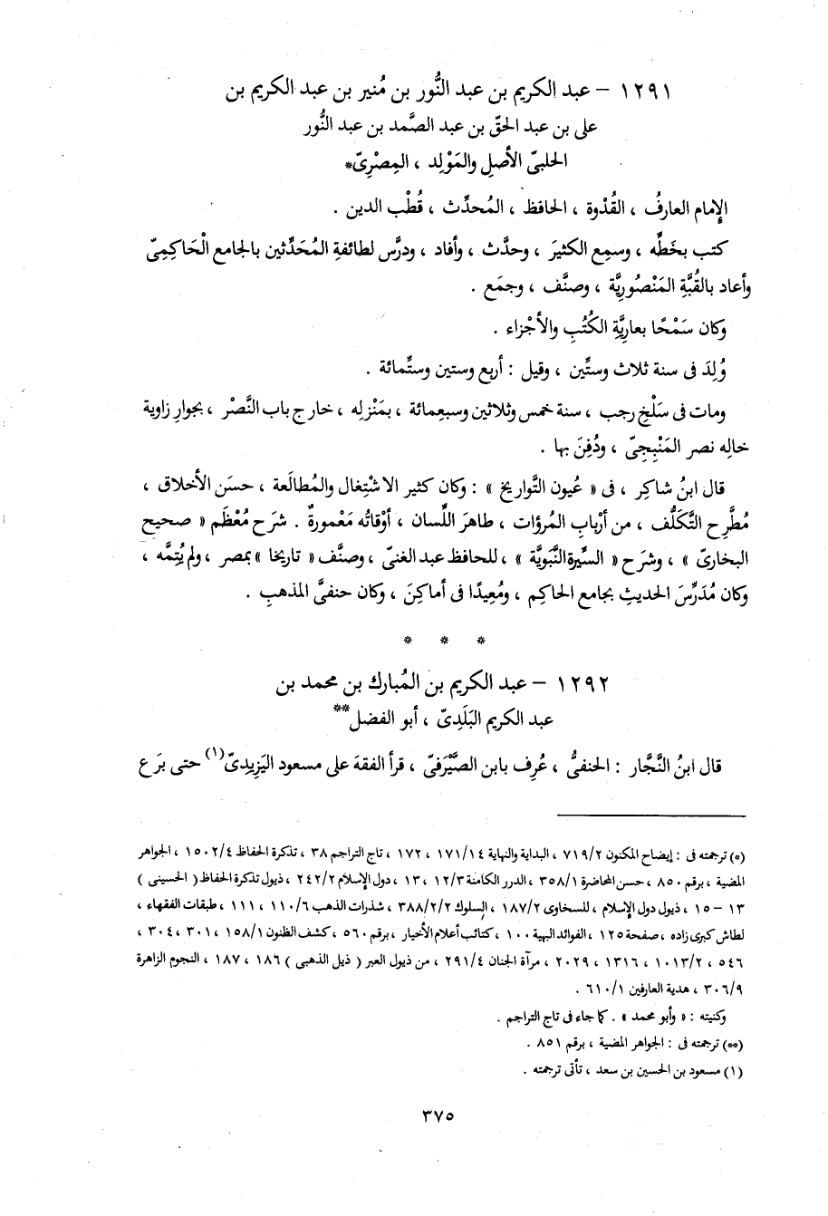 1291 - عبد الكريم بن عبد النّور بن منير بن عبد الكريم بن على بن عبد الحقّ بن عبد الصّمد بن عبد النّور الحلبىّ الأصل و المولد، المصرىّ *
