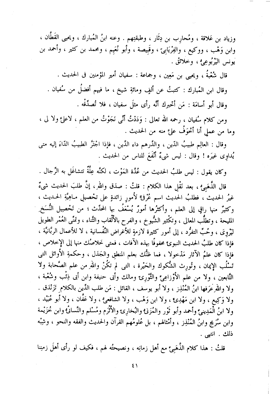 قلت: هذا كلام الذّهبىّ مع أهل زمانه، و نصيحته لهم، فكيف لو رأى أهل زمننا