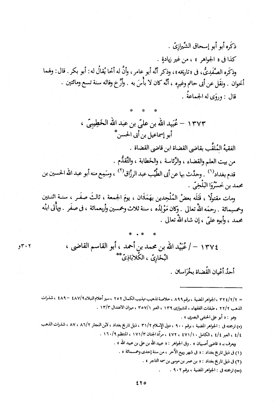 1374 - /عبيد اللّه بن محمد بن أحمد، أبو القاسم القاضى، البخارىّ، الكلاباذىّ **