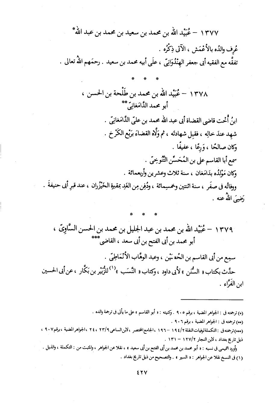 1378 - عبيد اللّه بن محمد بن طلحة بن الحسن، أبو محمد الدّامغانىّ **