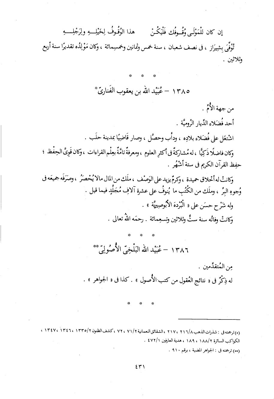 1385 - عبيد اللّه بن يعقوب الفنارىّ *